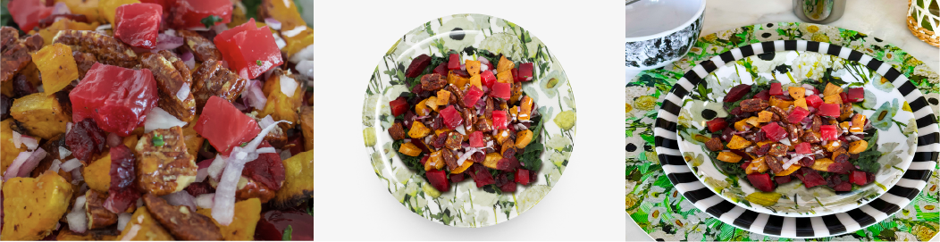 Melamine cleans easily in the dishwasher and stays vibrant, meal after meal.