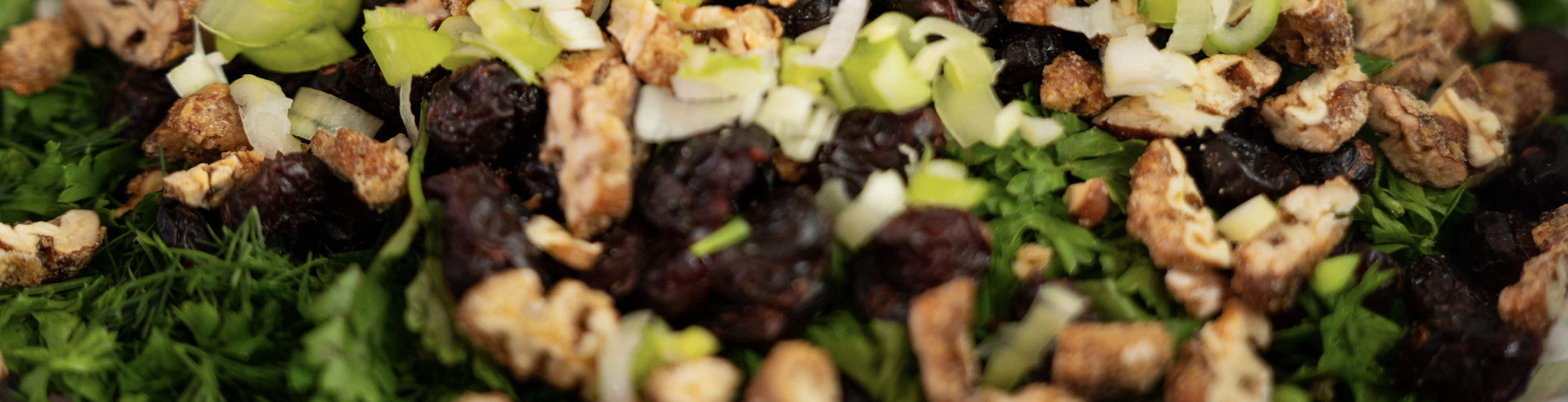 Herb Salad with Pecans is a fresh, vibrant medley that celebrates bold flavors and natural textures. A fragrant mix of cilantro, parsley, dill, and scallions creates a refreshing base, while candied pecans and tart craisins add just the right balance of sweetness and crunch. Tossed with a simple lemon-olive oil dressing, this salad is light yet full of character—perfect as a palate-cleansing starter or a bright complement to any main course.