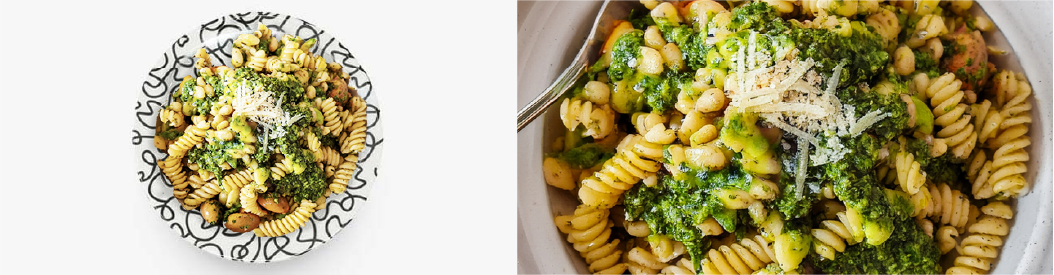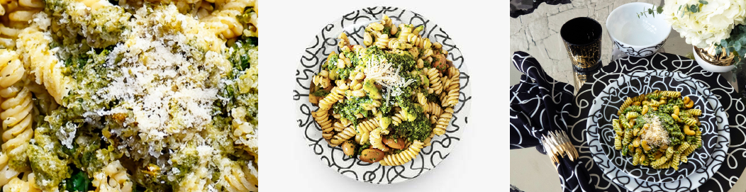 Since I’m always running from one place to the next, in my studio, at meetings, I make a bunch of pesto pasta salad in advance, pack it in a plastic lunchbox and take it with me on-the-go. It is so delicious and colorful, I simply love the bright green color which the pesto gives the pasta, beautiful.