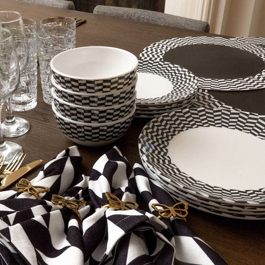 Black & White Squiggly Hostess Set - 20 Piece Setting
