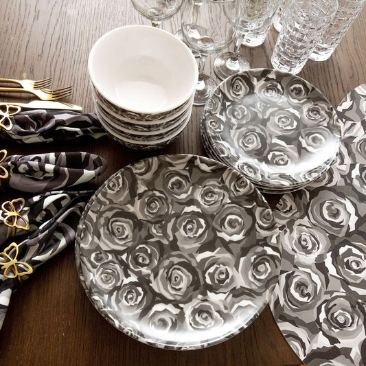 Grayscale Roses Hostess Set - 20 Piece Setting