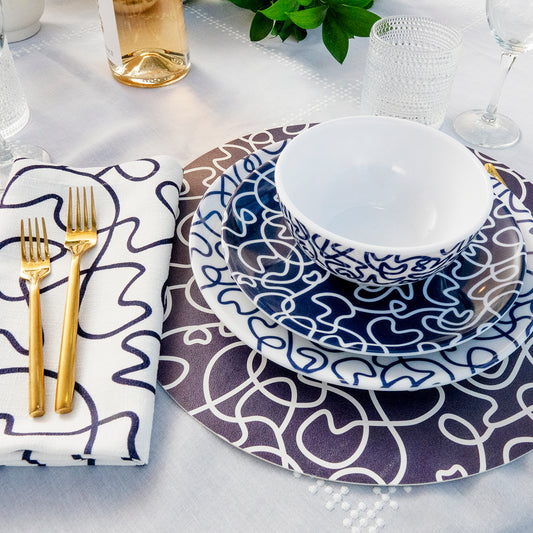 Navy Squiggly Hostess Set - 20 Piece Setting