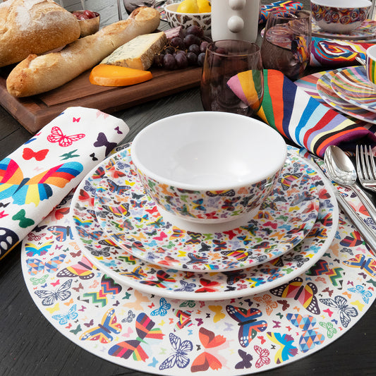 Multicolored Butterflies Hostess Set - 20 Piece Setting