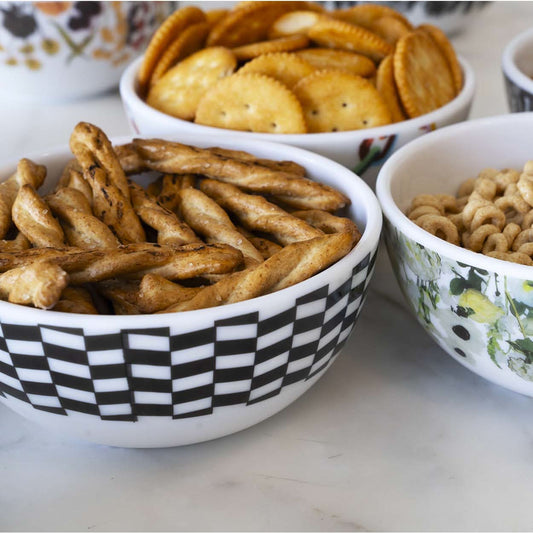 Melamine cleans easily in the dishwasher and stays vibrant, meal after meal.