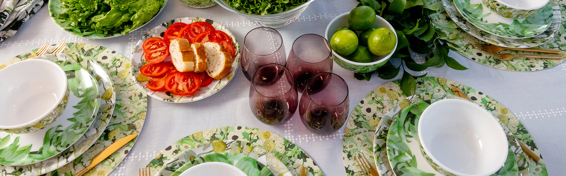 Tough and chip-resistant, melamine endures everyday use and outdoor dining.