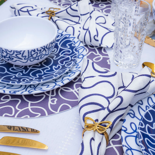 Navy Squiggly Hostess Set - 20 Piece Setting