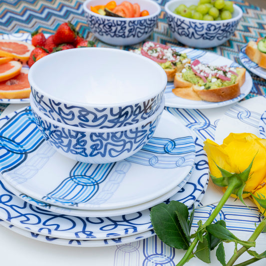 Melamine cleans easily in the dishwasher and stays vibrant, meal after meal.