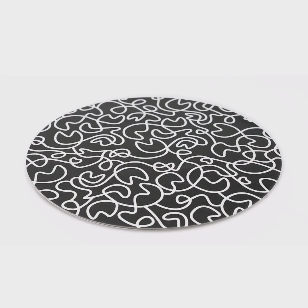 Add boldness to your table with the Black and White Squiggly vinyl placemat.